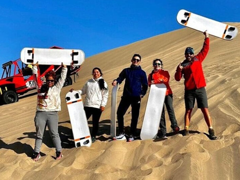 We end off our day in 🏝️ Huacachina Oasis 🏜️, exploring the surrounding desert with an exhilarating 🏎️ Sand Buggy Ride, where we'll also be able to 🏂 try Sand Boarding.